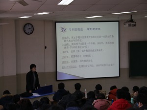 下午2点,李茜老师结合自己在专利申请代理方面的经验,指出了在专利申请过程中存在的问题以及解决的措施,并以现场演练的形式指导同学们进行专利申请中的各部分流程及中间事务的处理,申请书的撰写方法和技巧,查询专利的方式以及修改有关专利申请方面的文件档案。她首先简要的介绍了有关专利申请的一些基本知识,专利的发展历史以及知识产权的维护方式,为大家分析了申请专利权得到法律保护的重要性。接着,李茜老师讲解每年交各种专利费用的数目和时间,为使具有新颖性,创新性,实用性的科技创新产品得以获得专利证书,李茜老师着重强调需要在规定的时间内进行提交各种专利费,这关乎同学们的切身利益,吸引了同学们的关注。会后,在座的一部分同学们就各自感兴趣的问题与李茜老师进行了交流。