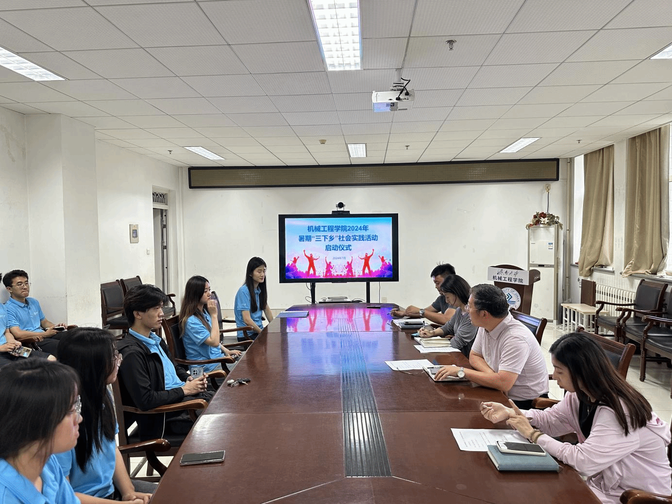 会上,薛浩详细介绍了本次“三下乡”社会实践活动的主题、内容以及行程安排。学院本次将以“青春为中国式现代化挺膺担当”为主题,组织多支实践团队深入农村地区,开展各类公益服务、社会调研和志愿帮扶活动,展现机械学子的青春活力。