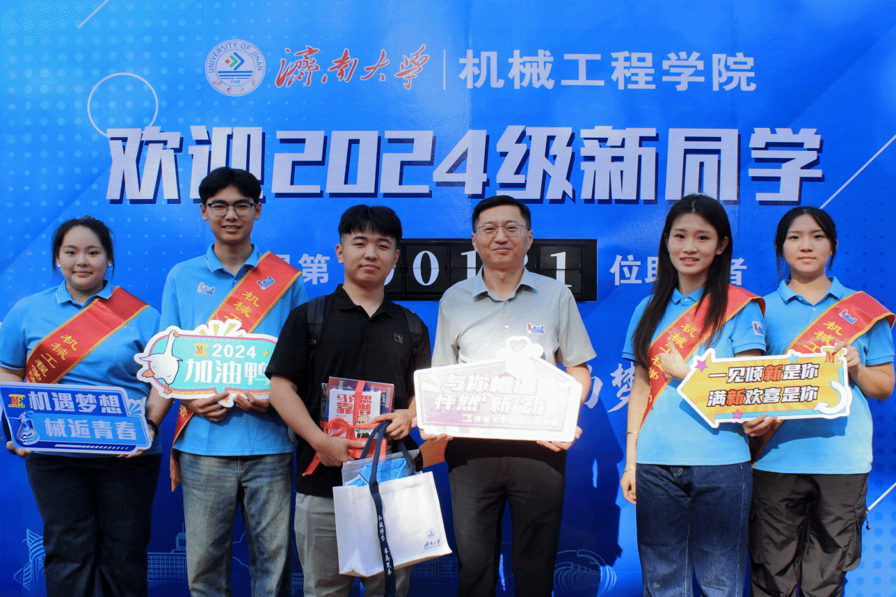 学院以专业特色为基础,以新生切实需求为出发点,打造了一系列具有机械特色的迎新活动。学院设置了以“点燃蓝色引擎,助力梦想启航”为主题的背景板,吸引新生参与助力活动、打卡合影留念。学院为每一位新生准备了迎新大礼包,其中包括定制帆布袋、院服、学院宣传页、新生文件袋,同时现场还有“送你一个锦囊妙计”的趣味活动,参加活动可获得绘图工具、定制文创扇子、种子券、学院特色钥匙扣等,增强新生对学院的归属感与融入感。