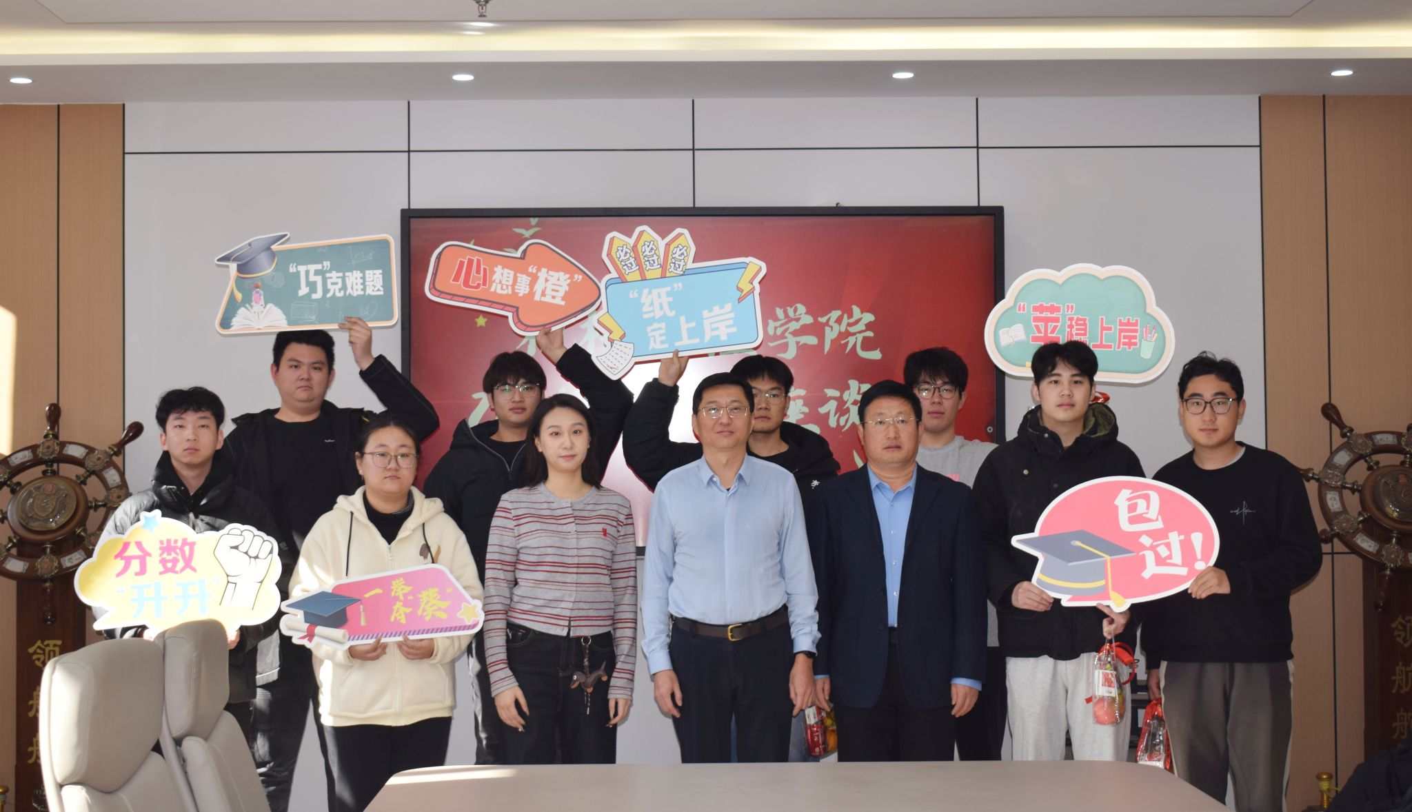 程涛与学生交流考研意向,以数据为切入点分析了近年考研形势。他提到,随着社会对高素质人才需求的提升,考研已成为同学们拓宽发展路径、实现自我进阶的重要机会。并指出,一要坚定目标砥砺前行。在最后关头,要做好自我管理、自我教育,始终保持清晰的头脑,沿着既定的目标稳步前行。二要松紧适度轻装上阵。学会保持平和、稳定的心态,正确看待考研过程中的得失,做自己情绪的主人。三要持之以恒一次功成。合理规划科学备考,初试结束后要将复试、调剂工作提上日程,最终实现“颗粒归仓”。