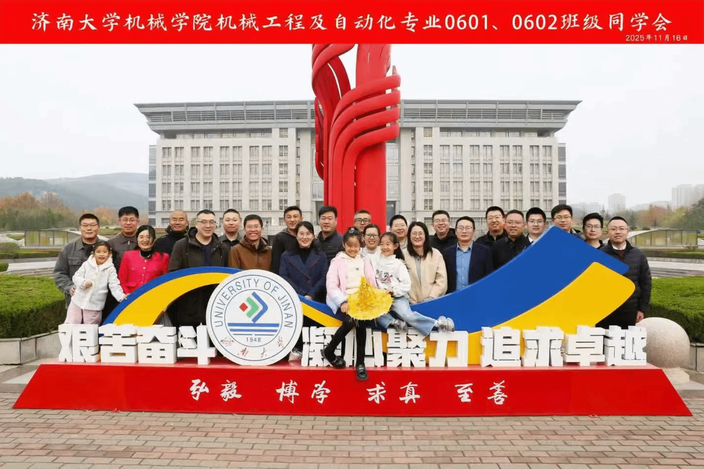 2025年11月15日至16日,济南大学环球360会员登录机械工程及自动化专业机自0601班、机自0602班近30名校友,在毕业15周年之际,从全国各地重返母校,畅叙同窗情谊。