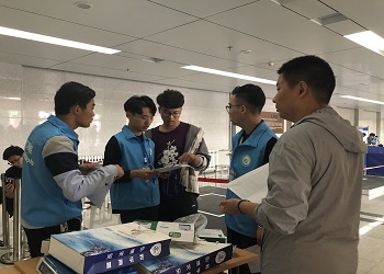 上午7点,陆续有参赛队伍带着作品来到机械楼,志愿者们热情迎接,帮忙拿行李,引导参赛选手前往报到处,进行参赛作品的测量称重。来自其他高校的部分参赛者十分喜爱济南大学美丽的风景,工作人员在向他们讲解比赛流程的同时也不忘向他们介绍美丽的校园。