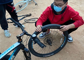 此次志愿服务活动中修车队志愿者现场演示,并在演示过程中对每个步骤进行了详细讲解,新加入的志愿者们认真学习,对于不清楚的内容及时提出疑问。干事们在部长的指导下学习如何补胎,如何调整闸线松紧,如何拆卸轮胎,以及如何修理刹车等问题。在修车过程中,他们学会了如何使用锉刀和六角扳手等常用修车工具。整个过程中对于队员们提出的问题部长们都给出了详细解答,对于修车过程中队员们出现的一些问题,例如补胎贴未粘贴到位、松紧扎线后未拧紧螺丝等情况,各个部长也及时指出,各位干事们听取意见后及时改正。
