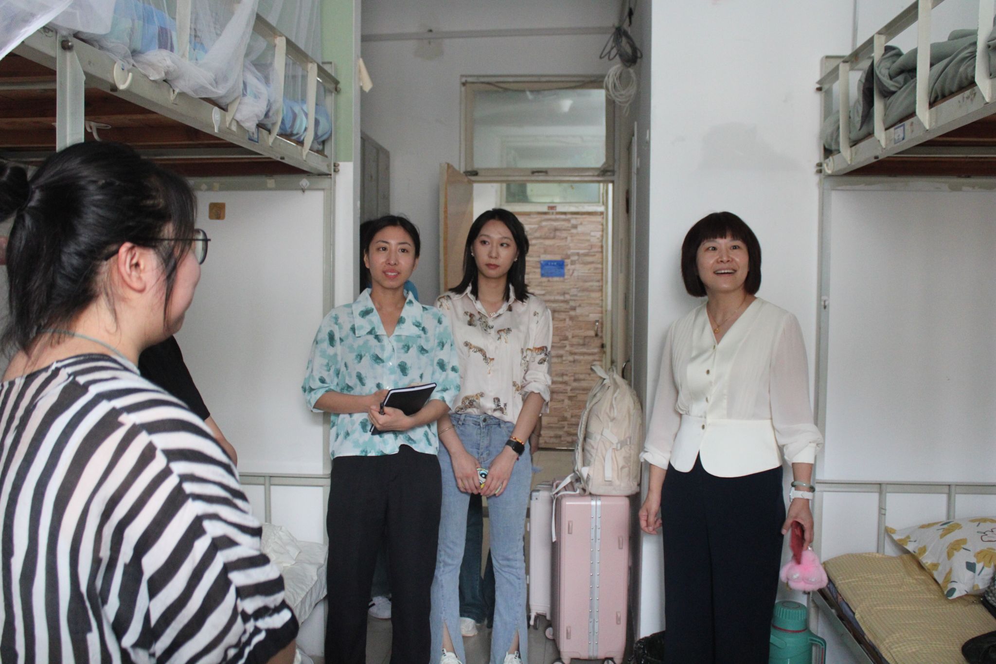 为帮助新生尽快转变角色,适应新生活新环境。9月6日,学院党委书记程涛、院长付秀丽、党委副书记孙成政带领全体辅导员来到新生宿舍,深入了解学生情况,为学生们送去热切的关怀。