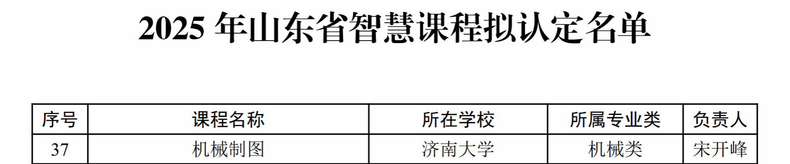 在山东省高等教育学会、山东省高等学校课程联盟公示的2025年山东省智慧课程认定结果中,我院《机械制图》获评为山东省首批智慧课程。